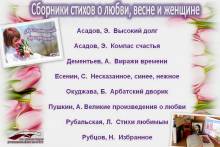 Поэзия, как и музыка, делает нашу жизнь солнечной и возвышенной, очищает наши души и дарит надежду на лучшее… И.С. Тургенев советовал в случае депрессии читать вслух не мене десяти стихотворений Пушкина. Мы же советовали бы читать и стихи современников: Э. Асадова, Ю. Друниной, А. Дементьева и др., что создаст и сохранит вам прекрасное весеннее настроение…