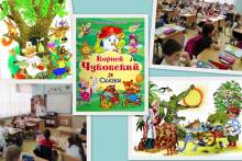 - игра- беседа «Великан по имени Чукоша» для учеников 1 «Б» класса ПСОШ № 3, где ребята с большим интересом участвовали, отвечали на вопросы, познакомились с биографией автора. А одна из учениц класса прочитала наизусть отрывок из произведения «Телефон». Закончилось мероприятие просмотром мультфильма.