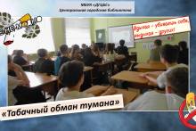 Центральная городская библиотека провела час полезной информации «Табачный туман обмана» для школьников ДСОШ № 3. В ходе проведенного мероприятия, с использованием социальных видеороликов, были затронуты важные проблемы современного мира - употребление табака подростками. Школьники внимательно слушали информацию о необратимых последствиях табака организму человека.
