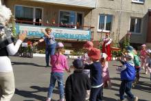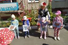 На этот раз в библиотечном дворике ребят ждали сказочные персонажи в исполнении сотрудники библиотеки и членов клуба «Литературная гостиная».