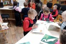 В конце встречи внимательно рассматривали книги и с удовольствием посмотрели мультфильм по сказке Мамина–Сибиряка «Серая шейка».