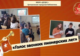 В преддверье дня рождения пионерии к её 100-летию в Центральной детской библиотеке была оформлена тематическая инсталляция «Пионерия – частица ВЛКСМ». Возле неё для шестиклассников школы № 5 была проведена виртуальная встреча...