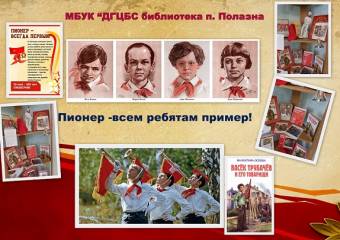 Пионерам-героям Великой Отечественной Войны посвящена и выставка-инсталляция «Пионер – всем ребятам пример» библиотеки п. Полазна...