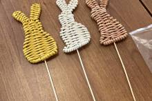 Первое занятие было посвящено технике «декупаж» декорирование пасхальных яиц. Второе занятие - плетение зайчат из бумажной лозы. Третье занятие - корзиночка-подставка из фоамирана.