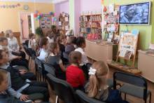 В библиотеке п. Полазна для учащихся 1-2 классов школы №1 был проведён час мужества «Вы в битве Родину спасали!», где дети познакомились с биографией и творчеством известных авторов среди которых: Сергей Алексеев, Лев Кассиль, Надежда Надеждина, Юрий Яковлев, Валерий Воскобойников, Анатолий Митяев,…Каждый рассказ – ещё один момент войны, ещё одна боль, ещё одна радость от военных успехов, ещё один поклон победителям. Ребята слушали фрагменты из произведений, дружно поддерживали песенные строки, с огромным интересом смотрели отрывок из художественного фильма «Остаюсь с вами» о последних днях жизни писателя Аркадия Гайдара: о его работе на фронте в качестве корреспондента «Комсомольской правды», встрече с тимуровцами, пребывании в партизанском отряде и гибели. А затем рассматривали книги на военную тему и взяли их для чтения домой. Приглашаем и вас в библиотеку!