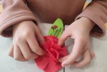 Светлана Николаевна с большим удовольствием рассказывала ребятам и их родителям об акции, о символическом значении цветка, и, конечно же обучала всех желающих мастерить гвоздики из гофрированной бумаги.
