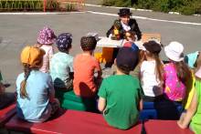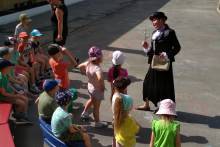 Вот это повеселились! Задорная Шапокляк в этот литературный четверг в библиотечном дворике не давала скучать детям ни одной минуты! Сначала она прочитала ребятам забавную историю про себя из книги Э. Успенского «Крокодил Гена и его друзья», потом начались весёлые игры! Шопакляк бегала за детишками со своим шариком на резинке и вышибала их из игры. Она прятала игрушечного чебурашку и подшутила над ребятами, спрятав его в последний раз себе под пиджачок. Мальчишки и девчонки ловили крыс на верёвочке «крыселовками» из картона и с большим азартом поиграли в боулинг! На прощание все обнялись и сфотографировались со старухой Шопакляк.
