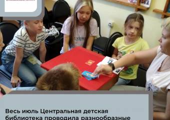 Весь июль Центральная детская библиотека проводила разнообразные мероприятия для детей летней площадки.