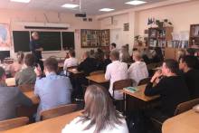5 сентября сотрудник Центральной городской библиотеки М.А. Калинин выступил перед одиннадцатиклассниками Добрянской школы № 2. Встреча состоялась в рамках ежегодной Всероссийской акции «Знание». В ходе занятия наш сотрудник рассказал школьникам о своих впечатлениях от поездки в г. Брянка Луганской народной республики, о встречах в местной библиотеке, в редакции газеты «Труд горняка», отделе культуры и т.д.