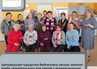 Центральная городская библиотека начала занятия клуба «Калейдоскоп» для людей с ограниченными возможностями здоровья. Цель его - поддержка активного долголетия, удовлетворение интеллектуально-познавательных, социально-коммуникативных потребностей.