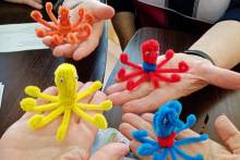 Центральная городская библиотека начала занятия клуба «Калейдоскоп» для людей с ограниченными возможностями здоровья. Цель его - поддержка активного долголетия, удовлетворение интеллектуально-познавательных, социально-коммуникативных потребностей. В программу клуба входят настольные игры и занятия творчеством. С возрастом у людей функции мышления, памяти, речи напрямую зависят от мельчайших движений рук. Делать поделки очень полезно - они стимулируют мышление, мелкую моторику, ловкость. Игровые занятия помогают тренировать наш мозг. Они избавляют от скуки, снимают стресс, помогают снизить кровяное давление, способствуют улучшению памяти. Игра «Ответь за 7 секунд» и МК из синельной проволоки «Осьминожка» доставили огромное удовольствие всем присутствующим.