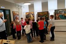 В ходе экскурсии юные художники не только познакомились с богатствами книжного, журнального фонда, но и получили огромное удовольствие от просмотра выставки картин пермского художника Виктора Остапенко.