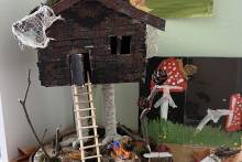 Рисунки и картины, книги и журналы, керамические и плетёные изделия, выполненные детьми и взрослыми; поделки из природных материалов и текстиля, натуральное дерево, бумажная лоза и ротанг, цветы и листья различных деревьев, грибы, фрукты, ягоды, овощи.