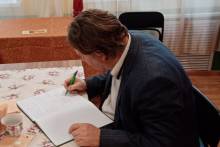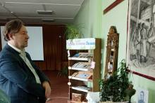 Сергей Иванович познакомился с библиотекой, сотрудниками, посмотрел выставки, полистал книги. Являясь учеником и преемником уникального художника М.М. Потапова, Сергей Лапин продолжает нести культурное наследие для широкой аудитории. В дружеской беседе гость рассказал о нелегкой жизни Михаила Потапова, родившегося в Варшаве в 1904 году, и, волею судеб, закончившего свое бытие в городе Соликамске в возрасте 103 лет. Участники встречи были покорены культурой и интеллигентностью Сергея Ивановича, умением донести до собеседника рассказ о художнике М.М. Потапове в изысканной манере. Так, за чаепитием в честь юбиляра (С.И. Лапину накануне исполнилось 60 лет), в непринужденной беседе участники встречи узнали много интересного о двух художниках. Присутствующие заинтересовались настолько, что пообещали приехать на экскурсию в г. Соликамск в Музей-квартиру М.М. Потапова. Встреча закончилась совместной фотографией и пожеланием процветания библиотеке от художника Сергея Ивановича Лапина.