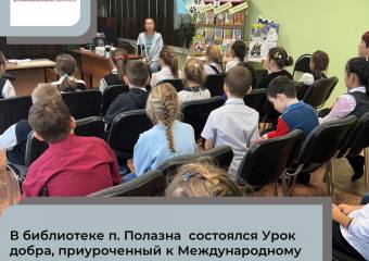 В библиотеке п. Полазна для ребят из 3 "Б" класса школы №3 прошёл Урок добра. Он был посвящён Международному дню защиты животных.