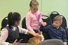 риглашённым гостем встречи стала волонтёр Елена. Самое интересное, что пришла она не одна, а со своими пушистыми воспитанниками, которые тут же были наглажены и налюбаны всеми ребятами.