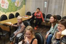 Для начала ребята знакомились между собой, поиграв в игру «Передай игрушку и назови свое имя», «Назови любимый цвет», танцевали с листочками, а также вместе с родителями активно принимали участие в игре-упражнении на развитие чувства ритма.