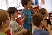 Малыши играли в игры «Свари кашу», «Угадай крупу», «Достань из крупы героя сказки» и др. Так же все вместе делали зарядку и пальчиковую гимнастику.