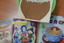В конце мероприятия для детей был проведен мастер-класс, где ребята из цветной бумаги мастерили горшок для каши, а затем делали аппликацию из овсяной крупы.
