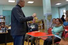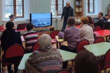 С докладом «Издательская деятельность Центральной городской библиотеки г. Добрянки» выступил наш сотрудник, автор многочисленных краеведческих книг и статей М.А. Калинин. Он рассказал о тематике наших изданий, о выпуске краеведческих сборников и о способах их финансирования, а также ответил на вопросы участников семинара.
