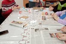 Разместившись за большим столом, все дружно приготовились для совместного творчества. Шпагат, клей, блестки, бусинки – через час с небольшим, усердного труда – и, появляется новогоднее чудо! Пока мастерили поделку – за столом было настоящее веселье, шутки, прибаутки слышались со всех сторон! У каждого участника получилась замечательная праздничная игрушка. Которая останется на долгую память. А еще, в памяти останутся от этого дня, проведённого в библиотеке, самые приятные воспоминания!