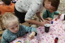 На очередной встрече родители с детьми узнали историю появления ёлочных игрушек, подсмотрели технику изготовления новогодних шаров и фигурок у опытных стеклодувов, потанцевали с зажигательным дедом Морозом. В конце мероприятия поучаствовали в мастер -классе по росписи новогодней игрушки, а так же послушали отрывок из книги Елены Ракитиной " Приключение новогодних игрушек".