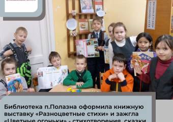 Декабрь – первый зимний месяц: морозный, сумрачный, но и радостный – впереди Новый Год! Библиотека п.Полазна для своих любимых читателей представила книжную выставку «Разноцветные стихи» и зажгла «Цветные огоньки» - звонкие и озорные, ласковые и грустные, яркие и красочные стихотворения, сказки замечательного детского писателя Якова Акима.