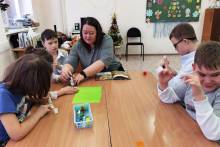 Центральная детская библиотека провела книгоигру «Заюшкина избушка» с детьми группы «Особый ребёнок» школы №5. Главный герой поучительной сказки «Заюшкина избушка» - зайка - пришёл к ребятам в гости и рассказал грустную историю. Каждый знает, что лисичка выгнала зайку из своего домика. Дети, прослушав сказку, с радостью помогали сказочным героям. В течение занятия мальчишки и девчонки весело танцевали, отгадывали загадки, собирали паззл и даже учились делать театр теней. Завершилась сказка тем, что ребята построили лисичке домик и подружили зверей друг с другом.