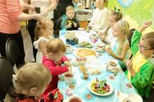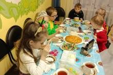 Родители для ребят накрыли стол со сладостями, где каждый ребенок пил чай и был очень доволен.