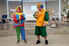 А веселые клоуны; Алексей Тунев и Никита Тимохов пригласили нас на цирковое представление, представив номер «Цирк для нас - это класс». Праздничная программа получилась очень насыщенной и разнообразной. Весёлое и яркое мероприятие прошло в дружеской и теплой обстановке.