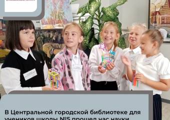 Для учеников школы №5, прошел час науки "Наука и чтение - лучшее учение", который провела для школьников Центральная городская библиотека.