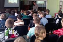 В конце мероприятия сотрудник библиотеки поздравил будущих защитников с наступающим праздником. И так же ребята посмотрели выставку рисунков учеников Полазненской детской школы искусств.