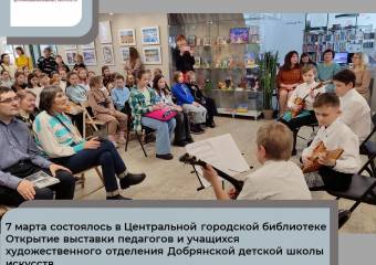 7 марта в Центральной городской библиотеке состоялось открытие новой художественной выставки педагогов и учащихся художественного отделения Добрянской детской школы.