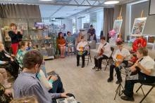 Необычайно многолюдным и очень музыкальным получилось открытие новой художественной выставки в Центральной городской библиотеке. 7 марта здесь открылась выставка педагогов и учащихся художественного отделения Добрянской детской школы искусств на которой присутствовало около ста человек. А юных художников и прикладников очень хорошо поддержали столь же юные музыканты и их педагоги Елена Чуданова и Елена Гуляева.