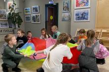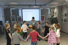 А чуть позже, ребята с родителями приняли участие в фольклорном часе «Ух ты, блин!». На нём они узнали историю появления Масленицы, познакомились с традициями празднования данного праздника, приняли участие в народных играх и изготовили свой собственный блинчик.