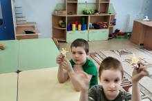 В завершении развлечения детям было предложено сделать свое солнышко. Ребята выполнили аппликацию из цветной бумаги, украсили солнышко желтыми и оранжевыми лучиками. Работы получились яркими и красочными. Мероприятие проходило в эмоционально – положительной атмосфере.