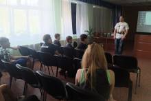 К ребятам так же заглянул автор многочисленных фильмов о нашем поселке. Лядов Алексей Сергеевич. Он совершил путешествие в заповедник «Басеги». Рассказал ребятам о том как можно посетить заповедник, какие есть экологические тропы и познавательные экскурсии, какие редкие виды животных и растений из Красной Книги Пермского края обитают и растут в заповеднике, напомнил о правилах поведения в заповеднике.