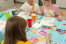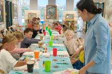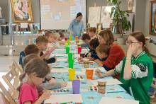 Пришедшие гости отправились в современную школу, побывали в классе времен Советского союза, порассуждали о том, что такое школьная жизнь. Не обошлось и без путешествия в сказочные школы и конечно традиционного мастер-класса. Каждый участник мероприятия нарисовал праздничный букет для своего любимого учителя и познакомился с литературой о школьной жизни, представленной на книжной выставке.