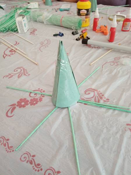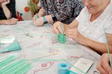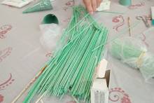 С шутками, с весёлыми присказками развивали мелкую моторику, стараясь сплести елочку. Терпение и кропотливый труд – и через 2 часа на столе появились зеленые красавицы! Но это ещё не финал. На следующем занятии елочку будут покрывать лаком, чтоб она стала устойчивой и крепкой. До встречи в библиотеке!