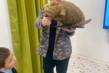 Елена Андреевна Шлыкова, сотрудник модельной библиотеки №8 г. Перми, рассказала об интересном зверьке - бобре, он главный герой книги. Неподдельный восторг вызвало чучело бобра, которое для презентации предоставили на кафедре зоологии позвоночных и экологии биологического факультета ПГНИУ.
