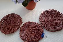 Посуда из бумажной лозы, обработанная грунтовкой, покрытая лаком, обладает достаточной прочностью, выглядит весьма оригинально, способна украсить интерьер городской квартиры или загородного дома. Бум на бумажное плетение, зародившийся не так давно, набирает большую популярность. Это не мудрено, ведь для создания столь необычных вещей используется бросовый материал. Из заранее накрученных бумажных палочек, умелицы плетут оригинальные вещицы.