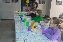 На мероприятии главного волшебника страны поздравляли и ребята, и сказочные персонажи. А какое же день рождение без веселых забав и интересных конкурсов? Вот и наши гости танцевали, смотрели мультфильмы, отгадывали загадки и конечно же читали! В завершении программы прошел мастер-класс, на котором ребята нарисовали опоздавшего гостя – белого медвежонка!
