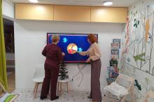 При показе игр на интерактивной панели обсуждались рабочие вопросы по мероприятиям, проектам и ведущей деятельности библиотеки. Чувствовалась заинтересованность коллег и доброжелательный настрой на сотрудничество.