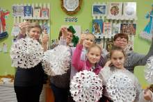 А в зале рядом с выставкой собрались на мастер-класс «Сделай сказку своими руками». Пришедшие гости решили поддержать народную традицию по созданию новогодних украшений для дома и на ёлку. Девочки, мамы, папы и бабушки, как добрые волшебники, превращали обычную бумагу разных размеров в сказочные ажурные снежинки с эффектом 3Д.