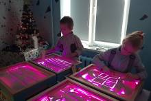 С помощью интерактивной панели и танцевального коврика дети погрузились в мир игры и танца. Кроме того, ребята узнали много интересного о праздновании Нового года и создали свою новогоднюю историю с помощью песочных столов.