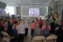 С помощью вопросов викторины «Кис-кис-мяу» ребята вспоминали, как звали котят, котов и кошек из разных сказок, рассказов и мультфильмов. А весёлый танец, с озорным котом на экране, вызвал много радости и смеха у детишек.