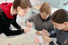 Из мультфильма ребята узнали историю празднования Пасхи и её традиции. Самой яркой из них, пожалуй, считается приготовление куличей и раскрашивание яиц. Школьники с интересом и удовольствием украшали заготовки куличей из солёного теста, а затем принялись лепить яйцо из воздушного разноцветного пластилина.