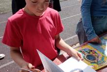 1 июня, в День защиты детей, совместно с Дворцом культуры и спорта имени А.Д. Черкасова, в рамках детского фестиваля, библиотекари организовали библиотечную площадку «Лето с книгой!» на спортивном стадионе Полазны. В праздничный солнечный день маленькие жители п. Полазна с удовольствием участвовали в различных библиотечных конкурсах: