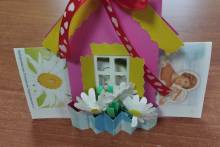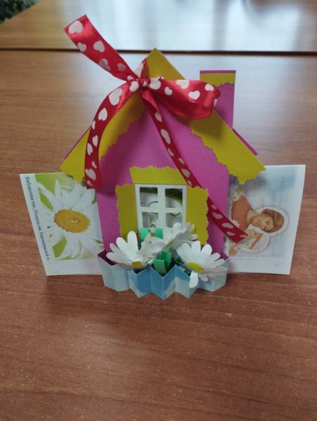 Участницы мастер-класса создавали оберег домашнего уюта и счастья – прекрасные домики с сюрпризом, и обязательно с ромашками – символом этого замечательного доброго праздника. С каким старанием юные мастерицы создавали свои домики в уютной и доброй атмосфере! Поэтому у каждой получился сказочный и красивый домашний оберег, наполненный любовью, счастьем и, конечно же, ромашками! Какой прекрасный подарок, сделанный своими руками, мастерицы вручат сегодня самым дорогим и близким – своим родителям! Осталось только вставить в домик открытку с добрыми пожеланиями и любимые сладости.