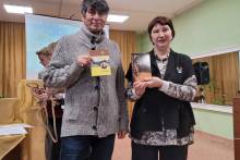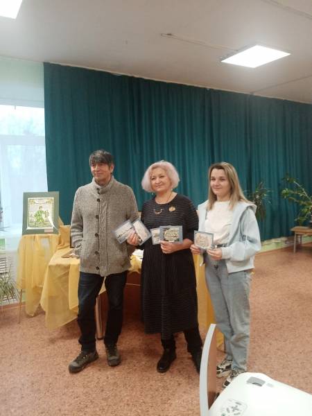 Художественным оформлением встречи в библиотеке стало знакомство с авторскими работами члена Союза художников России, преподавателя рисунка и графики Полазненской детской школы искусств Елены Леонидовны Старовойтовой по теме исследований северных земель (лубок). Здесь же состоялось награждение преподавателей Полазненской детской школы искусств памятными сувенирными открытками за участие во Всероссийском почтовом флешмобе-2025 «Великая Северная экспедиция». Музыкальное исполнение песен семейной парой — Владимиром Ивановичем Спешиловым и Любовью Николаевной Колобовой — придало мероприятию лирическо-романтический окрас.